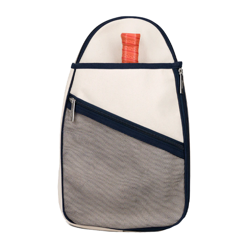 The Hamptons Pickleball Sling is made out of canvas and can be worn as both a backpack and a crossbody using the adjustable strap.