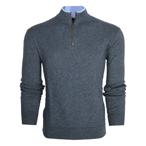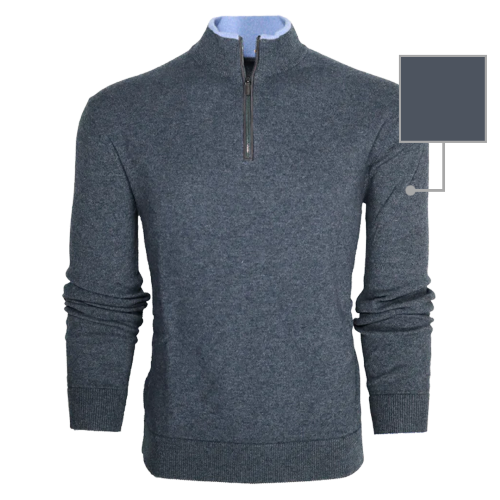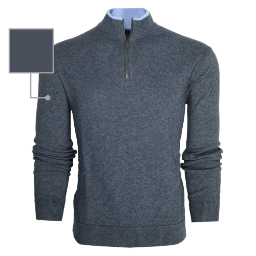 The Sebonack Quarter-Zip Sweater is crafted from a premium blend of wool and cashmere. Designed for buttery-soft comfort, this sweater keeps you light while providing warmth. Featuring a suede taping on the zipper placket and a crafted horn pull, it has Greyson's signature color contrast tipping on the left sleeve. Finished with rib-knit sleeves, collar, and hem.