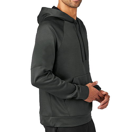This hoodie with a zippered left arm pocket brings the heat to your workout with Therma-FIT fabric. Therma-FIT helps manage your body’s natural heat to keep warm in cold-weather conditions. The design includes a three-panel hood with black drawcords and a front pouch pocket. Self-fabric cuffs and hem.