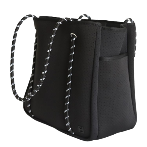 Sourced from the highest quality materials and made from durable neoprene and sailing rope, the Five Love Courtside Totes are washable and structured to stand up on their own.