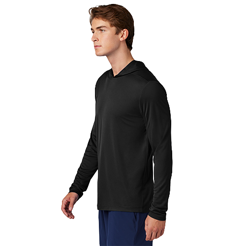 Take the lead in this high-performance long sleeve hoodie with exceptional UV protection, moisture wicking and snag resistance.